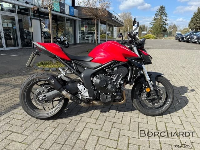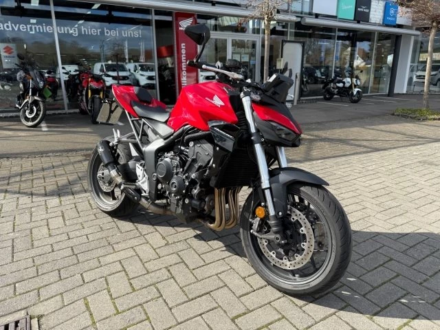 Die Hornet-Familie ist jetzt vollständig und unser Topmodell sticht heraus. Die neue CB1000 Hornet mit ihrem Vierzylindermotor ist ein erstklassiges Naked Bike, das den Asphalt zum Glühen bringt. Throttle By Wire sorgt für präzise Kontrolle, während das Fahrwerk mit der einstellbaren SHOWA 41mm SFF-BP Upside-Down-Gabel und dem Pro-Link-Federbein ausgestattet ist. Die unverfälschte, aggressive Streetfighter-Attitüde wird durch einen markanten LED-Doppelscheinwerfer unterstrichen. Das 5-Zoll TFT-Farbdisplay und die Honda RoadSync-Konnektivität sorgen für die nötigen Informationen. Kann es losgehen?