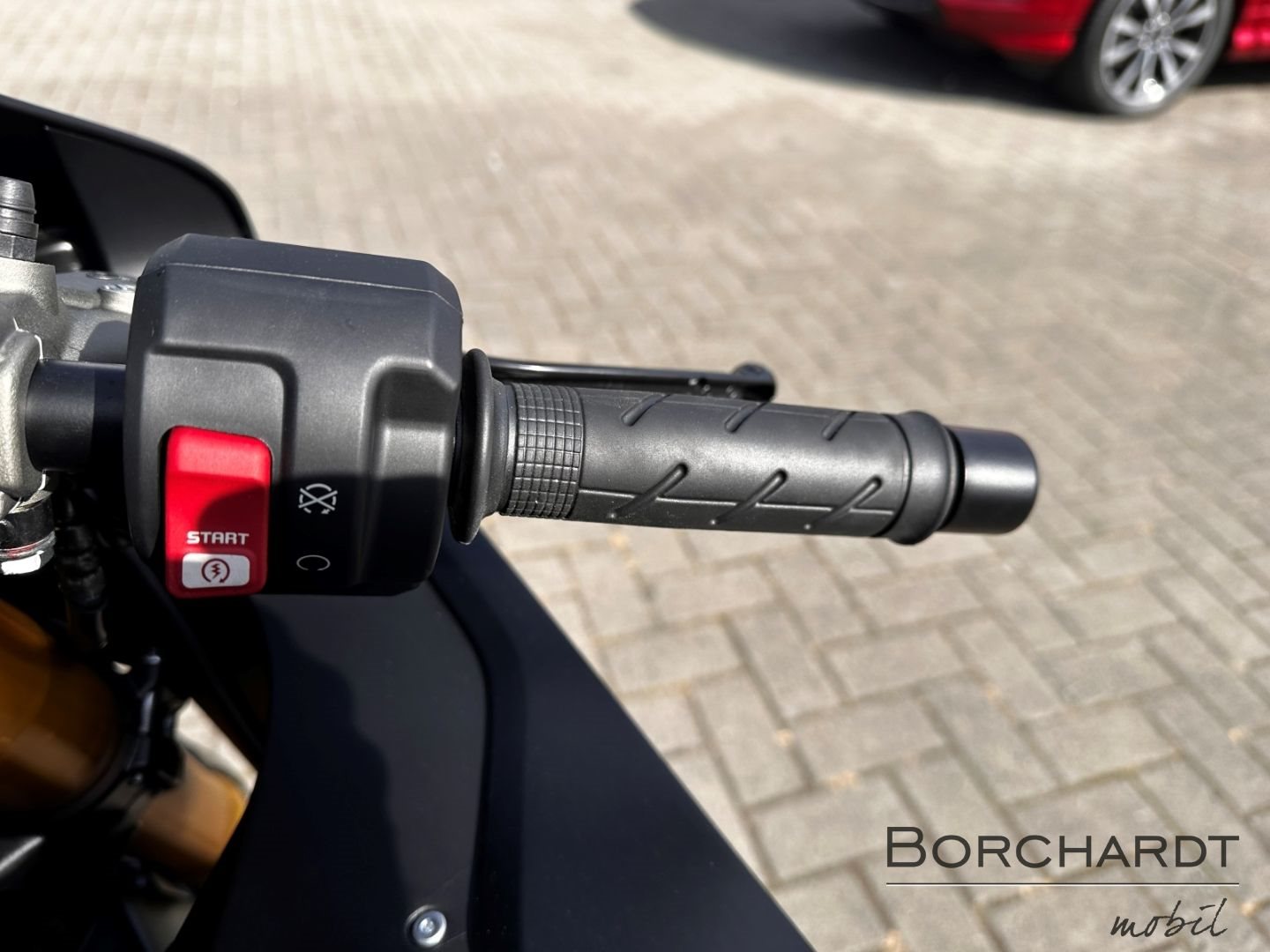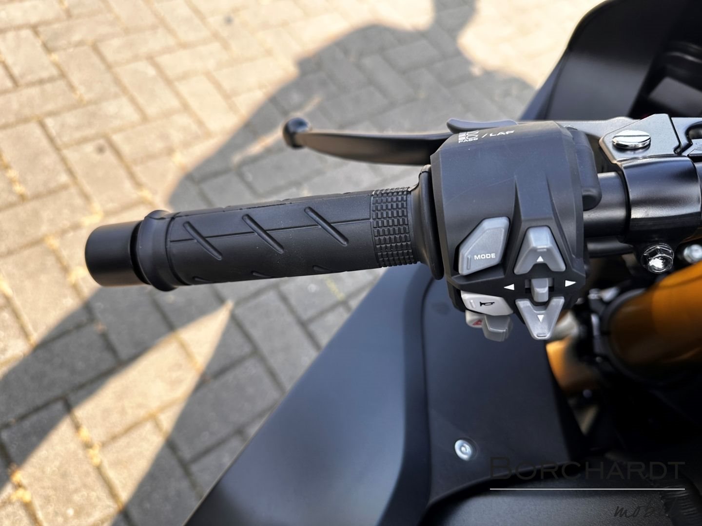 Unsere Rennfahrer haben stets ambitionierte Wünsche. Wir haben also den 1.000-ccm-Vierzylinder-Viertakt-Reihenmotor mit "Semi-Cam"-Nockenwelle von der Ansaugung bis zum Auspuff genau unter die Lupe genommen. Das Verdichtungsverhältnis ist auf 13,6 : 1 gestiegen und auch die Kanäle, die Ventileinstellungen und die Federn wurden überarbeitet. Die Kurbelwelle und die Titan-Pleuel sind leichter, was die Massenträgheit reduziert. Die kleineren Übersetzungsverhältnisse und die präzise Gasannahme werden durch das einzigartiges Twin Throttle By Wire System gewährleistet. Die Zahlen sind beeindruckend. 159,5 kW (217 PS) bei 14.000 U/min und 113 Nm bei 12.000 U/min. Doch das Besondere ist die Art und Weise, wie dieser Motor jetzt unaufhaltsam - und doch sanft und kontrollierbar - durch den mittleren Drehzahlbereich bis hin zum roten Bereich läuft, mit einer Leistungssteigerung, die einfach berauschend ist.