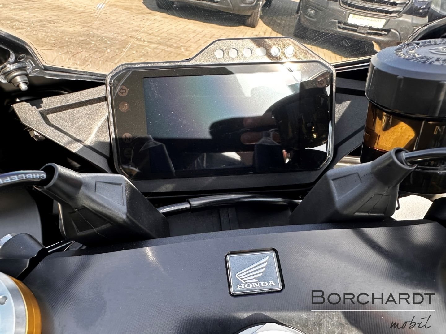 Das macht für uns die Faszination des Rennsports aus. Wir sind seit jeher dem Rennsport verbunden und durch die Feedbacks von HRC und unseren Fahrern haben wir die neue CBR1000RR-R Fireblade hervorgebracht. Sie zeichnet sich durch höhere Leistung im mittleren Drehzahlbereich aus, die durch Verbesserungen am Ansaugsystem und am Zylinderkopf erreicht wurde, sowie durch die überarbeitete Übersetzung, die für einen unglaublichen Zug aus der Kurve heraus sorgt. Bei der Spitzenleistung bleibt alles beim Alten. Das Ansprechverhalten wurde durch die zweimotorige Throttle By Wire-Steuerung noch weiter verbessert, sodass dank der extrem präzisen Gasannahme jede Umdrehung zählt. Gewichtseinsparungen und eine genau ausbalancierte Steifigkeit des Chassis verbessern das Handling und den Grip. Die neu gestalteten Verkleidungswinglets sorgen für mehr Abtrieb bei geringerem Lenkwiderstand. Und ganz gleich, ob du auf einer kurvenreichen Straße unterwegs bist oder Runde für Runde den optimalen Scheitelpunkt anpeilst, die neue Fahrposition bietet dir Freiheit und gleichzeitig völlige Kontrolle. Für Rennen geeignet? Das ist eine reinrassige Rennmaschine.