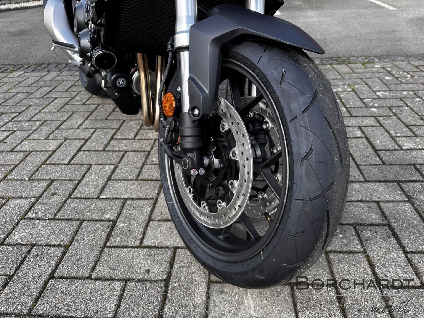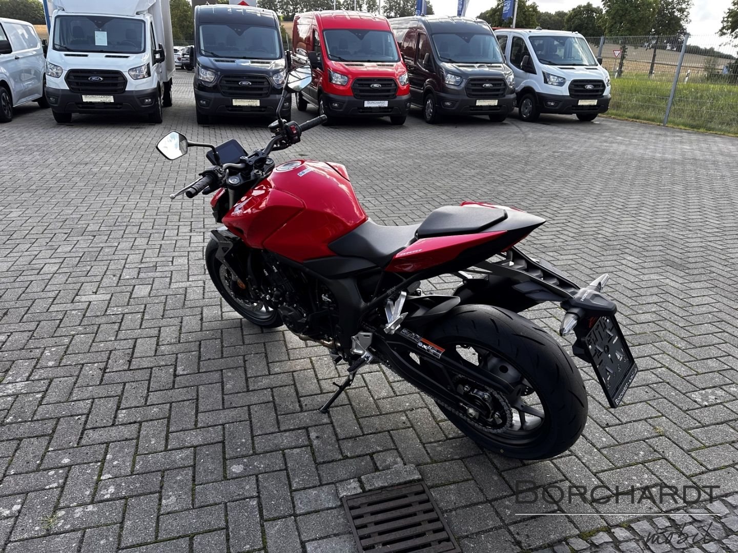 Die Hornet-Familie ist jetzt vollständig und unser Topmodell sticht heraus. Die neue CB1000 Hornet mit ihrem Vierzylindermotor ist ein erstklassiges Naked Bike, das den Asphalt zum Glühen bringt. Throttle By Wire sorgt für präzise Kontrolle, während das Fahrwerk mit der einstellbaren SHOWA 41mm SFF-BP Upside-Down-Gabel und dem Pro-Link-Federbein ausgestattet ist. Die unverfälschte, aggressive Streetfighter-Attitüde wird durch einen markanten LED-Doppelscheinwerfer unterstrichen. Das 5-Zoll TFT-Farbdisplay und die Honda RoadSync-Konnektivität sorgen für die nötigen Informationen. Kann es losgehen?