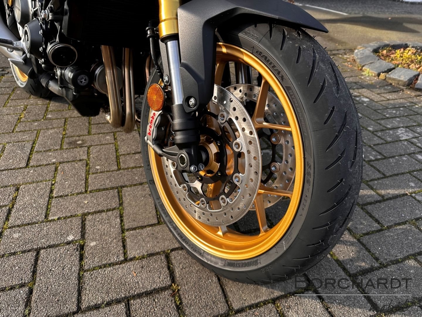 Die Hornet-Familie ist jetzt vollständig und unser Topmodell sticht heraus. Die neue CB1000 Hornet mit ihrem Vierzylindermotor ist ein erstklassiges Naked Bike, das den Asphalt zum Glühen bringt. Throttle By Wire sorgt für präzise Kontrolle, während das Fahrwerk mit der einstellbaren SHOWA 41mm SFF-BP Upside-Down-Gabel und dem Pro-Link-Federbein ausgestattet ist. Die unverfälschte, aggressive Streetfighter-Attitüde wird durch einen markanten LED-Doppelscheinwerfer unterstrichen. Das 5-Zoll TFT-Farbdisplay und die Honda RoadSync-Konnektivität sorgen für die nötigen Informationen. Kann es losgehen?