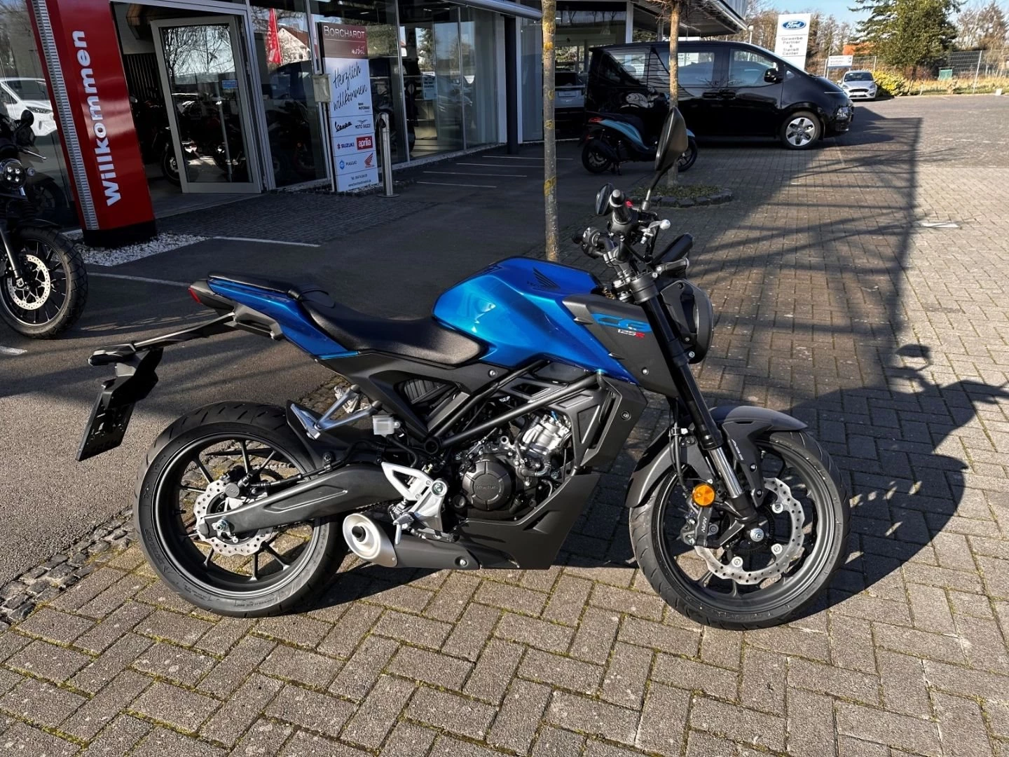 ls Teil der Neo Sports Café-Produktreihe setzt die kleine Schwester der CB1000R ein klares Zeichen. Die aktualisierte CB125R zeichnet sich durch ein kühnes Design mit modernen Merkmalen aus. Der Stahlrohrrahmen und der runde Scheinwerfer mit der markanten Einfassung vervollständigen ein unverwechselbares Profil. Gemeinsam mit der LED-Beleuchtung und dem 5-Zoll TFT-Farbdisplay verleiht dies der CB125R eine gewisse Raffinesse.Was aber wirklich auffällt, ist die geballte Leistung des 125er DOHC-Motors. Die Präzision der Showa SFF-BP USD-Federgabeln sorgt für ein sanfteres Fahrverhalten und ein angenehmeres Fahrgefühl, selbst auf holprigen Straßen.
