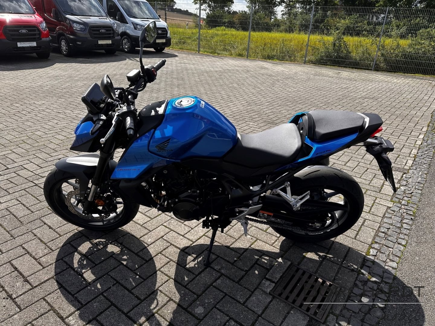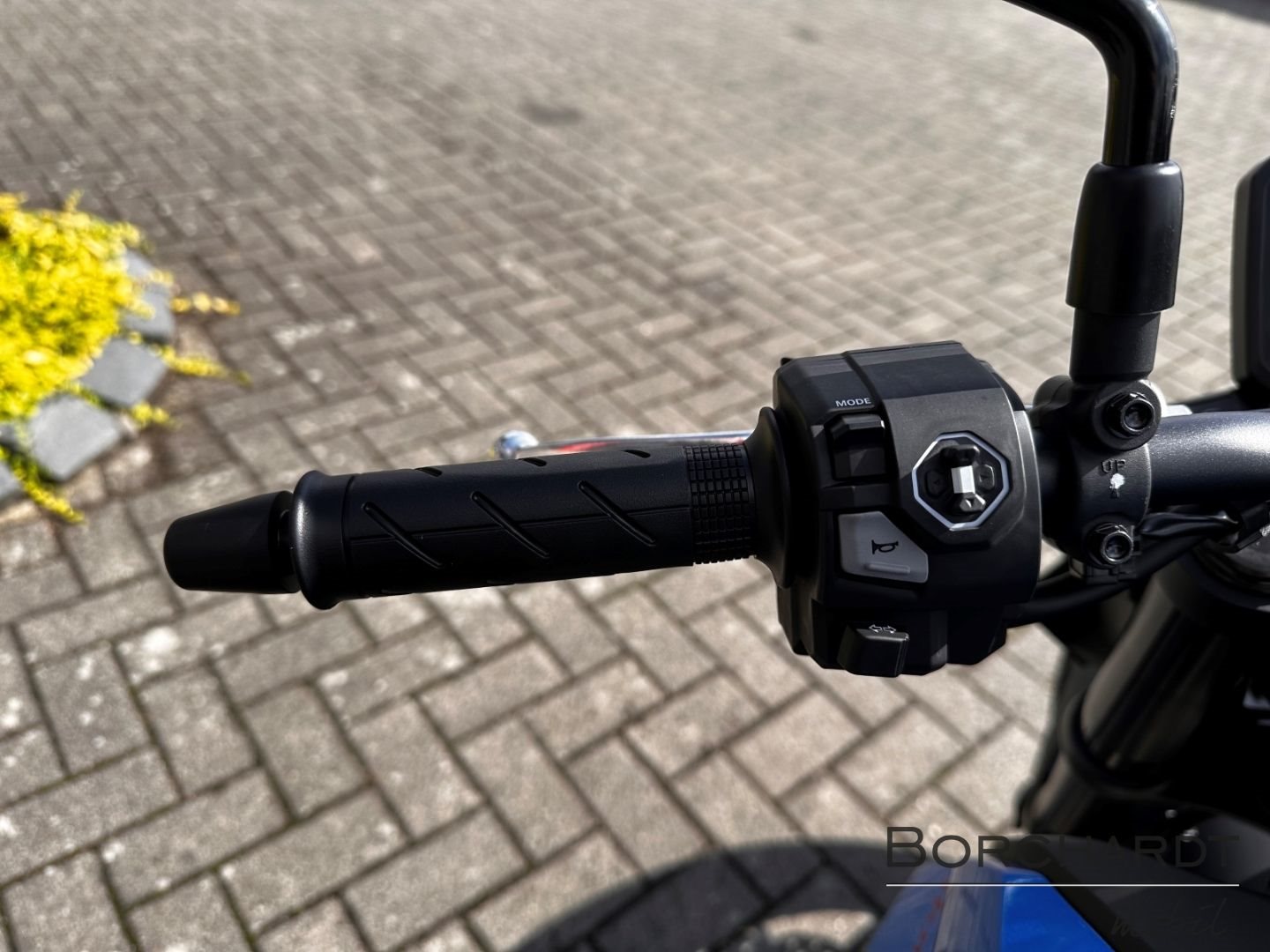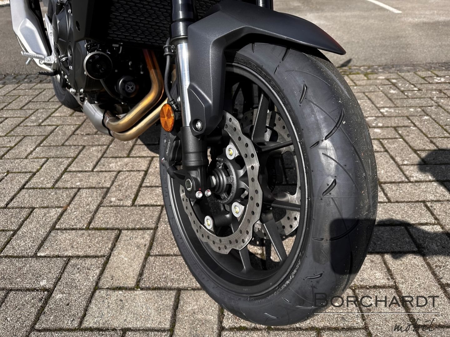 Du hast volle Kontrolle über den atemberaubenden Motor der CB750 Hornet. Die Präzision der elektronisch gesteuerten Drosselklappe (TBW) ermöglicht drei Standard-Fahrmodi: "Sport", "Standard" und "Rain" sowie ein anpassbarer User-Modus zur Feinabstimmung (in drei Stufen) der Honda-Drehmomentkontrolle (HSTC) und Wheelie-Control. Du kannst auch die Motorleistung und die Motorbremse individuell anpassen. Das neue 5-Zoll-TFT-Farbdisplay zeichnet sich darüber hinaus durch eine intuitive Benutzeroberfläche sowie Konnektivität per Honda RoadSync aus. Der neue LED-Scheinwerfer der Hornet ist bis zu doppelt so hell und verbessert die Sichtbarkeit, wenn du die Straßenlaternen hinter dir lässt, und die automatische Blinkerabschaltung sorgt dafür, dass du dich auf die Kurvenfahrt konzentrieren kannst.