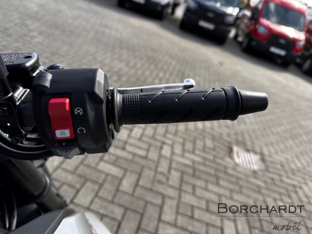 Du hast volle Kontrolle über den atemberaubenden Motor der CB750 Hornet. Die Präzision der elektronisch gesteuerten Drosselklappe (TBW) ermöglicht drei Standard-Fahrmodi: Sport, Standard und Rain sowie ein anpassbarer User-Modus zur Feinabstimmung (in drei Stufen) der Honda-Drehmomentkontrolle (HSTC) und Wheelie-Control. Du kannst auch die Motorleistung und die Motorbremse individuell anpassen. Das neue 5-Zoll-TFT-Farbdisplay zeichnet sich darüber hinaus durch eine intuitive Benutzeroberfläche sowie Konnektivität per Honda RoadSync aus. Der neue LED-Scheinwerfer der Hornet ist bis zu doppelt so hell und verbessert die Sichtbarkeit, wenn du die Straßenlaternen hinter dir lässt, und die automatische Blinkerabschaltung sorgt dafür, dass du dich auf die Kurvenfahrt konzentrieren kannst.
