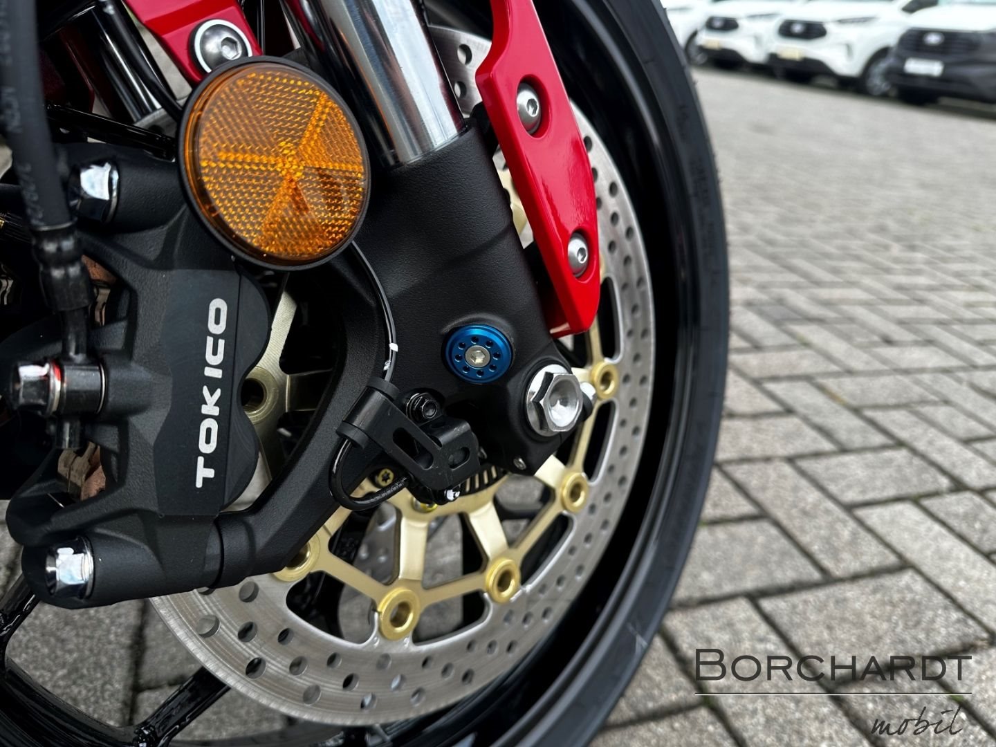 Mit 89 kW (121 PS) Spitzenleistung liefert der Motor Adrenalin pur: 14.250 U/min, eine atemberaubende Höchstgeschwindigkeit sowie ein starkes Drehmoment von 63 Nm in einen weiten Bereich sorgen für reichlich Vortrieb bei der Kurvenausfahrt. Abgestimmte Einlasskanäle und 44-mm-Drosselklappen sorgen für maximale Kraftstoffzufuhr bei hohen Drehzahlen. Zylinderkopf, Ventiltrieb und -steuerung, Kurbelwelle und Auspuff wurden gemeinsam optimiert. Der Motor ist für den Straßenverkehr EURO5+ und OBD2-2-konform.
