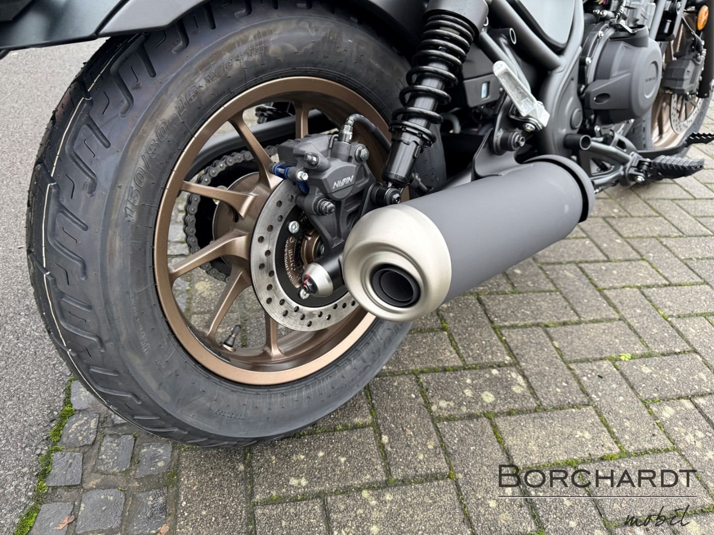 Dein Motorrad spiegelt deinen Charakter wider. Eine Erweiterung deiner Seele. Deshalb haben wir den CMX500 Rebel gebaut. Sie vereint rauen Oldschool-Charme mit aktuellem Design. Im Stahlrohrrahmen mit niedrigem Profil sitzt ein charakterstarker, A2-konformer Zweizylindermotor mit reichlich Drehmoment. Wir haben einige Aktualisierungen vorgenommen die Lenkerposition wurde optimiert und der Sitz ist jetzt noch bequemer. Das elegante vordere Schutzblech besteht jetzt aus lackiertem Stahl. Die CMX500 Rebel Special Edition steht mit ihrem Street-Custom-Style für Individualität wie keine andere.