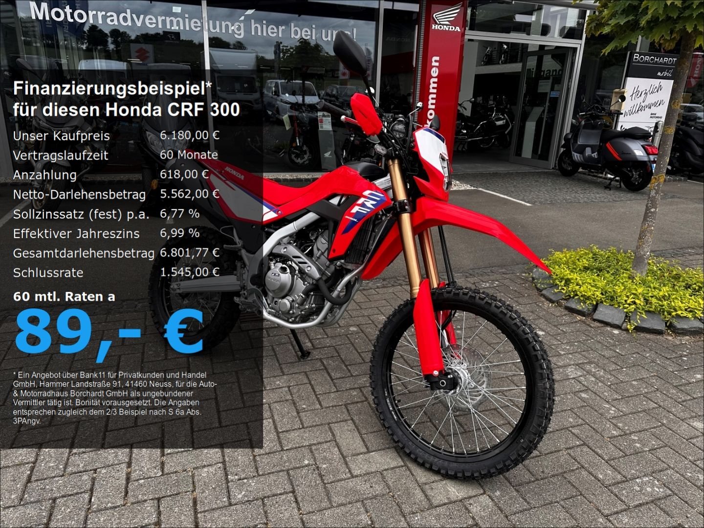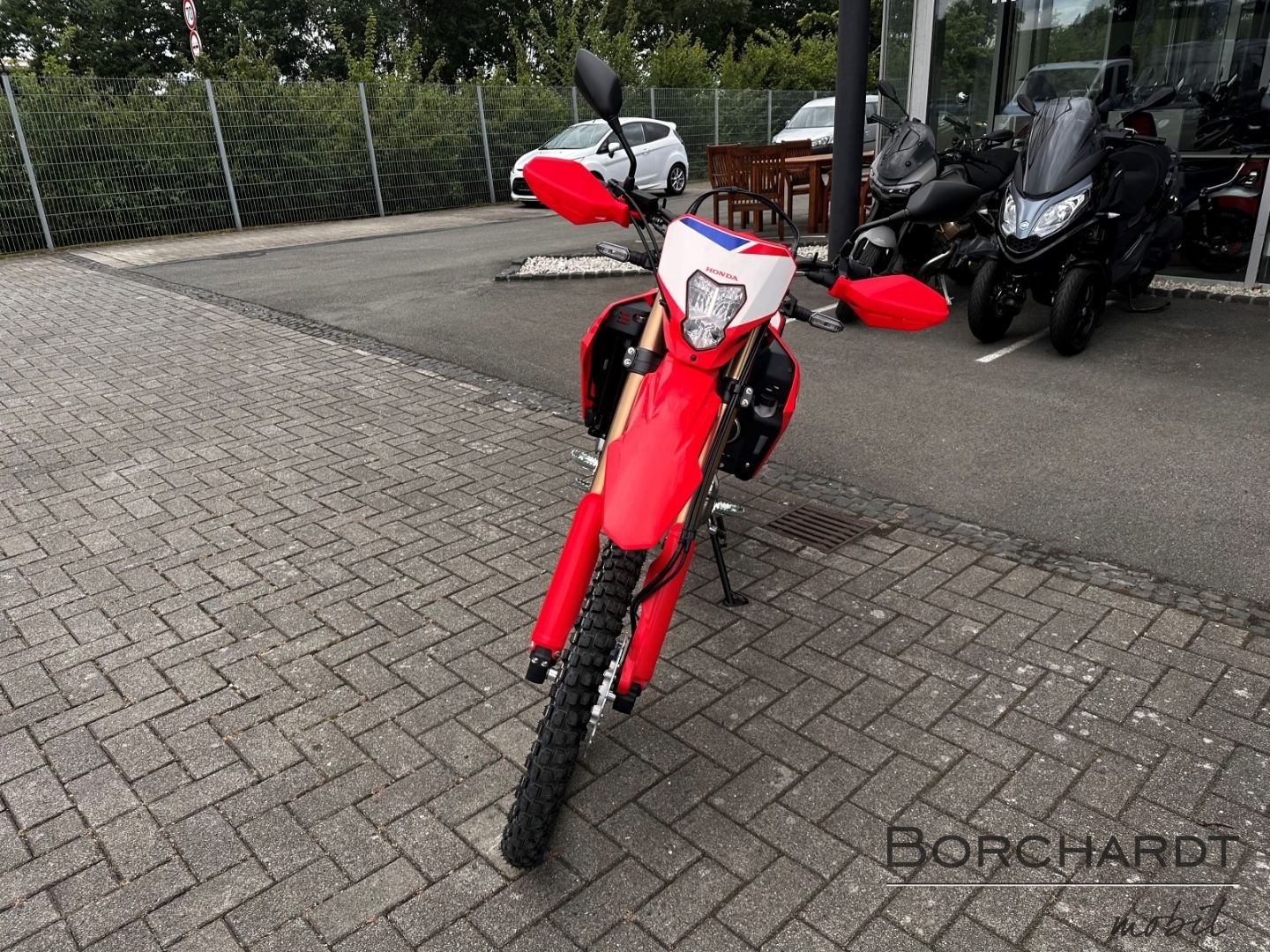 Die CRF300L ist das ultimative Leichtgewicht unter den geländegängigen Motorrädern mit Straßenzulassung. Die Merkmale, die sie so gut im Gelände machen - schlanke Proportionen, dynamische Gasannahme, agile Lenkung und das komfortable Fahrwerk - machen sie auch perfekt für die Stadt. Die überragende Allround-Performance und das agile Handling bringen Schwung in den Alltag. Die CRF300 Rally ist genau das Richtige für abenteuerlustige Fahrer, die neben Offroad-Performance auch Langstreckentauglichkeit und Komfort zu schätzen wissen.