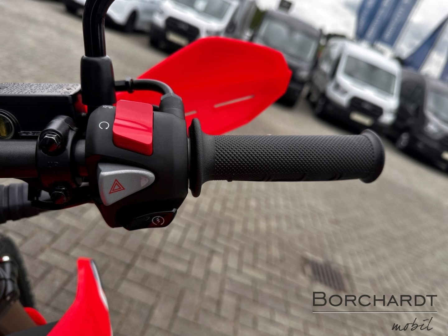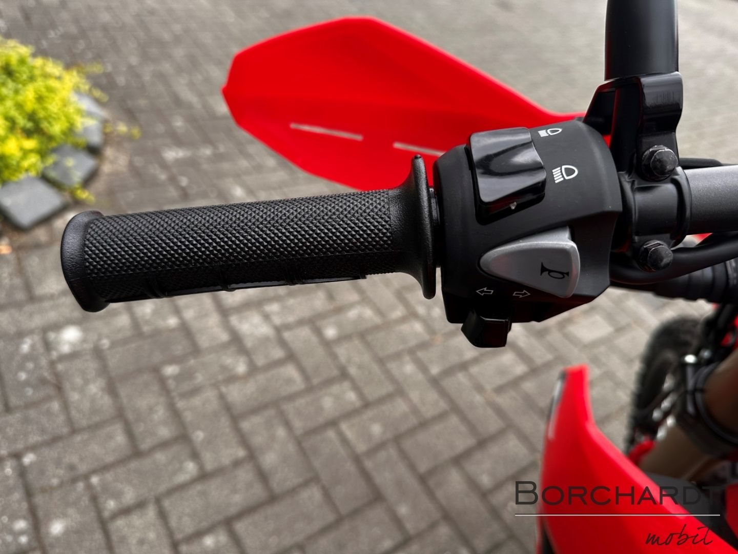 Der Einzylindermotor liefert unmittelbar knackige 20,1 kW (27,3 PS) bei 8.500 U/min und ein Drehmoment von 26,6 Nm bei 6.500 U/min. Die Assist-/Slipper-Kupplung ist noch leichter zu bedienen und vereinfacht damit das Handling in der Stadt und im Gelände. Die überarbeitete Auspuffanlage zeichnet sich durch ein besseres Wärmemanagement aus. Der neue Kühlergrill optimiert den Ansaugluftstrom und die neue Seitenabdeckung lenkt den Abgasstrom vom Fahrer weg.