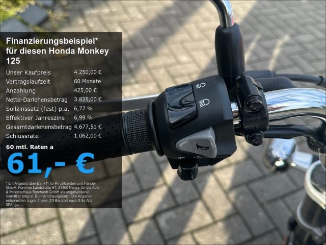 Freue dich auf puren Fahrspaß. Darum geht es bei der Monkey. Die Monkey mit ihrem einzigartigen Design zaubert beim ersten Anblick ein Lächeln auf dein Gesicht. Wenn du die Monkey das erste mal fährst, zaubert sie dir garantiert ein breites Grinsen ins Gesicht vor allem wegen dem charaktervollen Motor. Dabei ist die Monkey klein genug, um sie hinten auf einem Wohnmobil zu verstauen. Und sie schlängelt sich durch den Stadtverkehr, wo sonst niemand durchkommt. Denn bei der Monkey geht es vor allem um den reinen, unverfälschten Fahrspaß. Und das ist das Schöne daran.