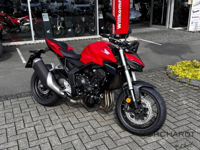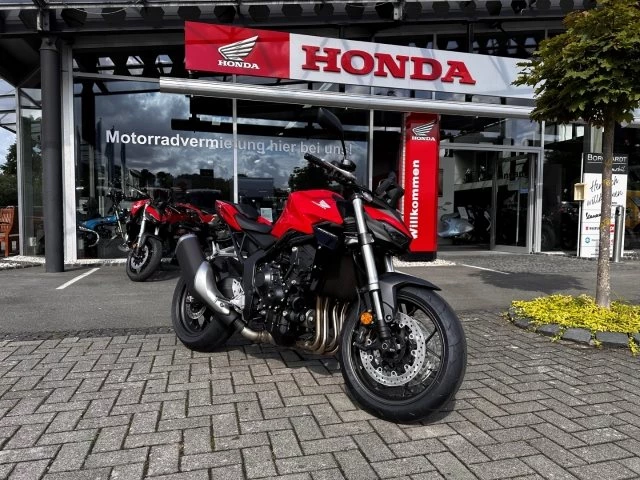 Die Hornet-Familie ist jetzt vollständig und unser Topmodell sticht heraus. Die neue CB1000 Hornet mit ihrem Vierzylindermotor ist ein erstklassiges Naked Bike, das den Asphalt zum Glühen bringt. Throttle By Wire sorgt für präzise Kontrolle, während das Fahrwerk mit der einstellbaren SHOWA 41mm SFF-BP Upside-Down-Gabel und dem Pro-Link-Federbein ausgestattet ist. Die unverfälschte, aggressive Streetfighter-Attitüde wird durch einen markanten LED-Doppelscheinwerfer unterstrichen. Das 5-Zoll TFT-Farbdisplay und die Honda RoadSync-Konnektivität sorgen für die nötigen Informationen. Kann es losgehen?